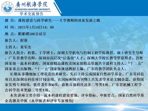 程蓉教授学术讲座预告:课程建设与科学研究——大学教师的双重发展之路